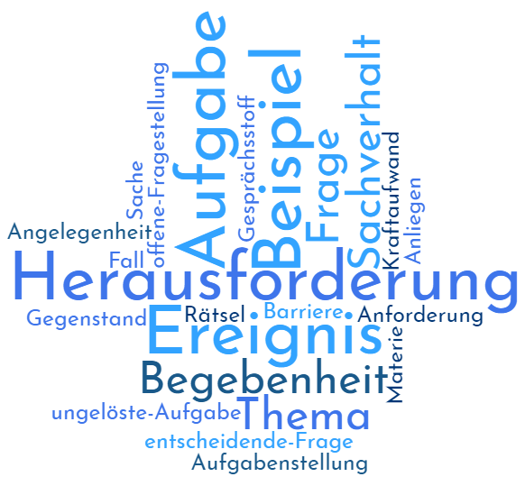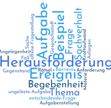 Herausforderung, ungelöste Aufgabe, offene Fragestellung, Aufgabenstellung, Anforderung, Fall, Sache, Sachverhalt, Gegenstand, Materie, Thema, Anliegen, Angelegenheit, Beispiel, Aufgabe, Ereignis, Rätsel, Frage, Barriere, Kraftaufwand, Begebenheit, Gesprächsstoff, entscheidende Frage, ...